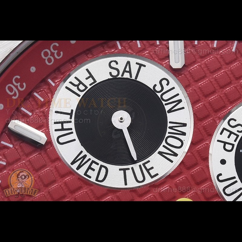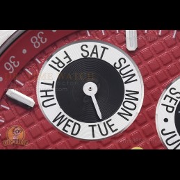 | Dial: | Red Checkered Dial with Stick Markers and Subdials |