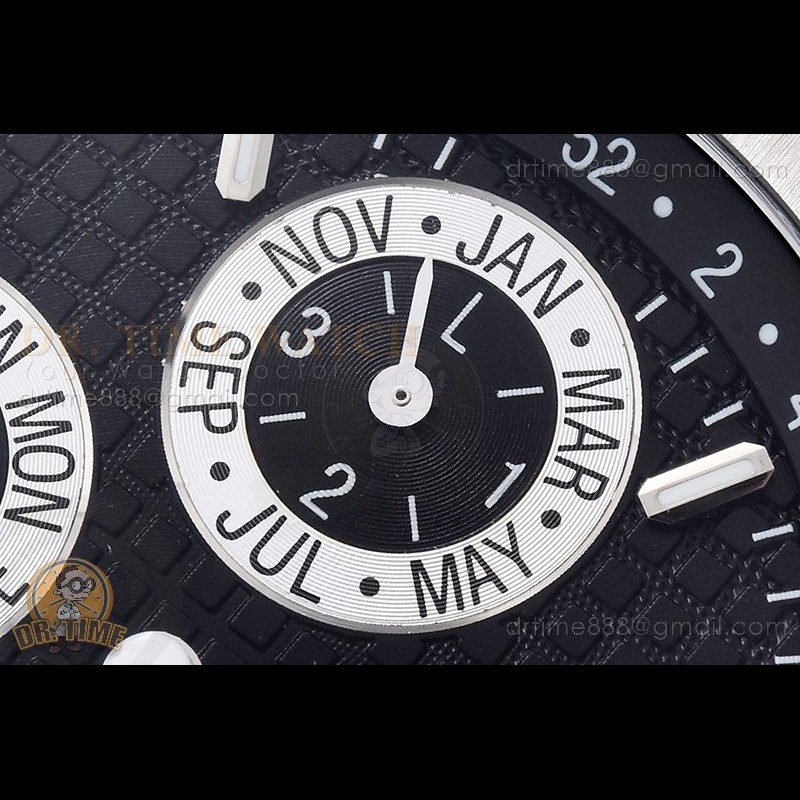 | Dial: | Black Checkered Dial and Silver Subdials with Stick Markers and Subdials |