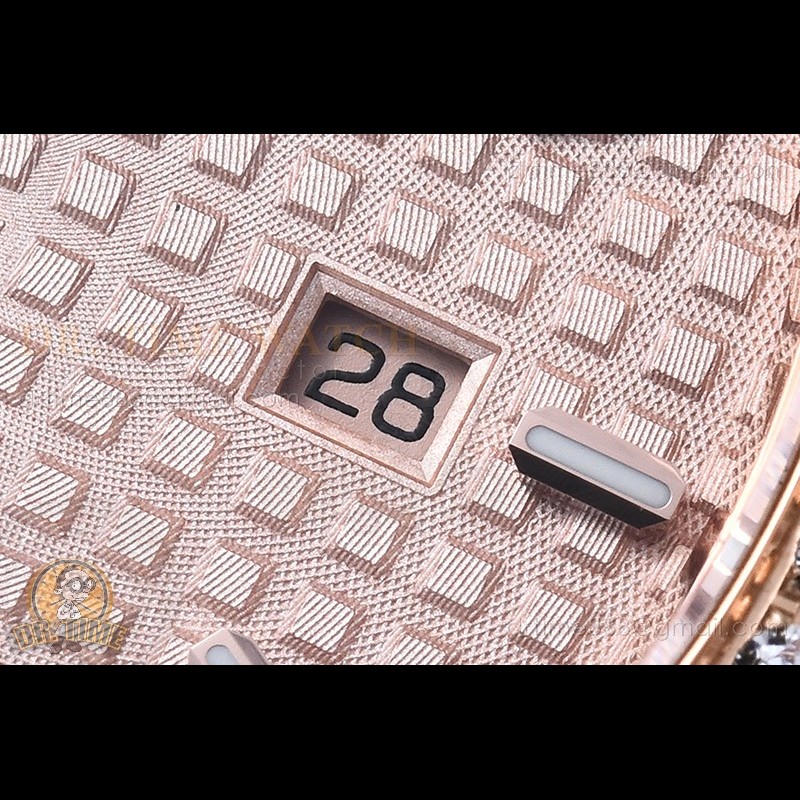 | Dial: | Rose Gold Checkered Dial with Stick Markers |
