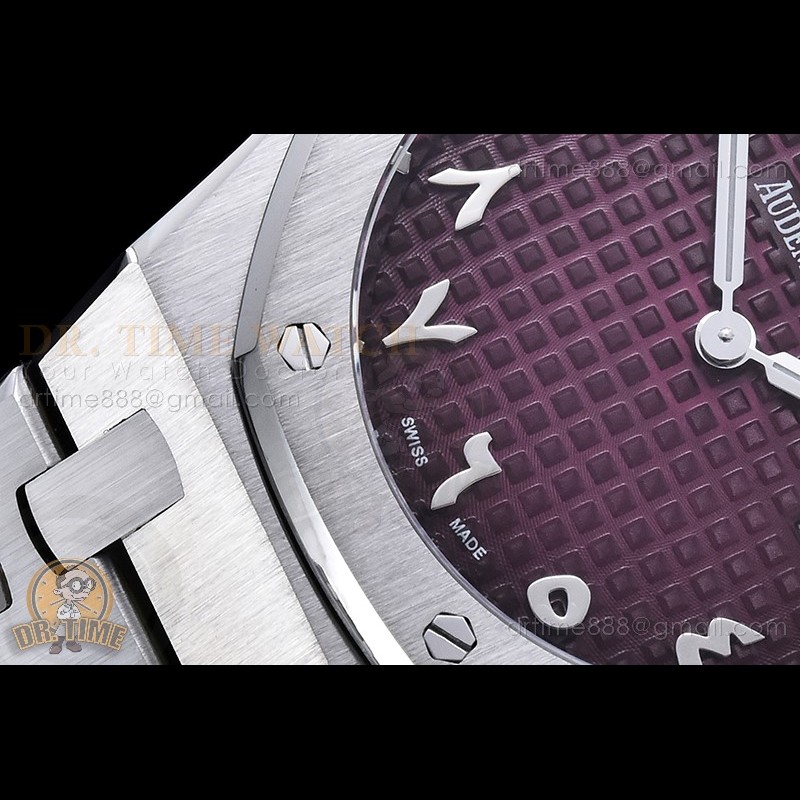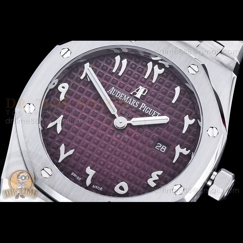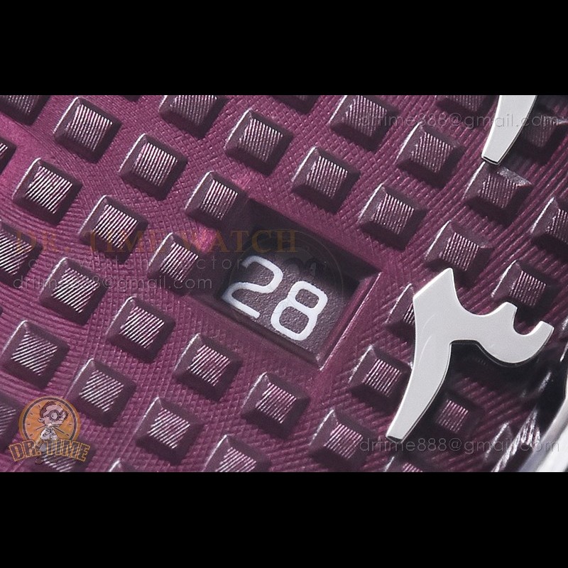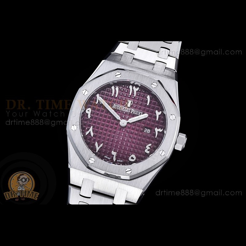 | Dial: | Dark Red Checkered Dial with Arabic Markers |