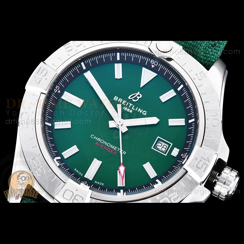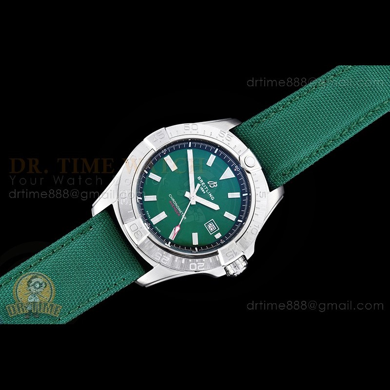 Avenger 44mm SS Green Dial Sticks on Green Nylon Clad Leather Strap OXF A2824