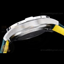 Size:43mm x 12.3mmMovement:Nickel Plated Asia 2824-2 Automatic, 28800bphFunctions:Hours, Minutes, Seconds, DateCase:Solid Stainless Steel 316F High GradeCrystal:Sapphire Crystal with AR Coat (Swiss Grade Quality) Dial:Yellow Dial with Stick Markers (With Swiss Grade SuperLume Applied)Bezel:Uni-Directional Bezel (Anti-Clockwise) - With Superlume Pearl...