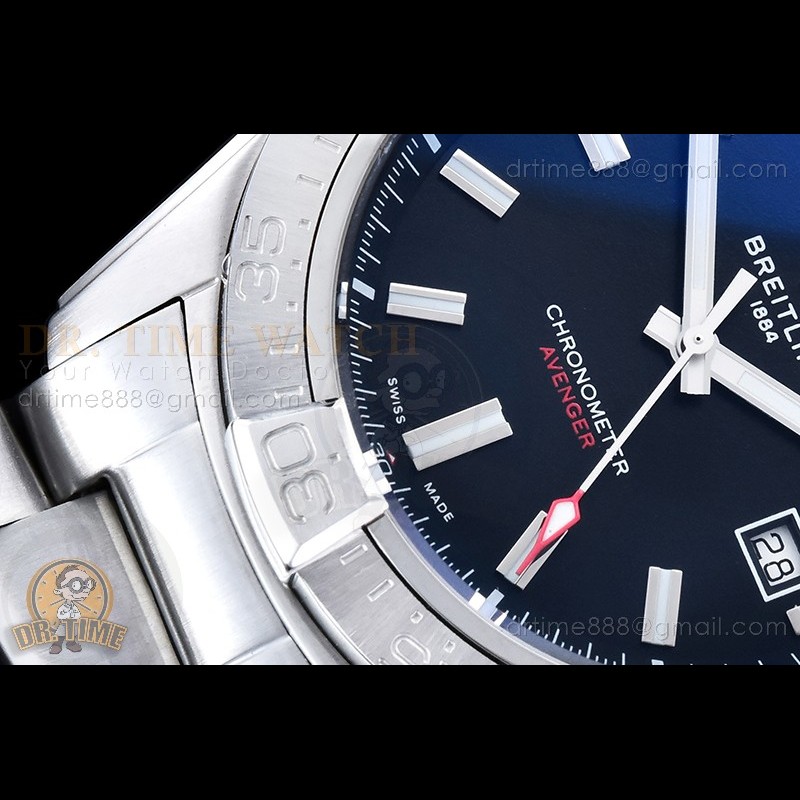 Size:43mm x 12.5mmMovement:Nickel Plated Asia Eta 2824-2 Automatic Movement, 25J, 28800bph Functions:Hours, Minutes, Seconds, DateCase:Solid Stainless Steel 316L Crystal:Sapphire Crystal with AR Coating (Swiss Grade) Dial:Black Dial with Stick Markers (With Swiss Grade SuperLume Applied) Bezel:Uni-Directional High Quality Metallic Bezel Strap:Blue Leather...