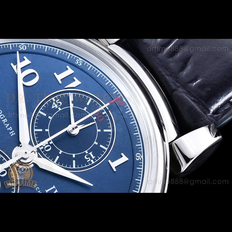 Size:40mm x 13mmMovement:Asia Automatic movement, 28800bph modified with engraved Rotor, bridges and plates like Genuine Caliber 82200 Functions:Hours, minutes, secondsCase:Solid Stainless Steel 316F Crystal:Sapphire Crystal with light AR Coating Dial:Blue Dial with White Subdials and Numeral Markers Bezel:Solid Stainless Steel 316F Strap:Black Croc...