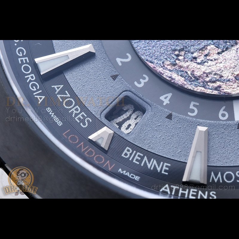 | Movement: | Asia Eta 2836-2 Automatic Movement, 25J, 28800bph, with Functional GMT, decorated to look like Calibre 8938 |