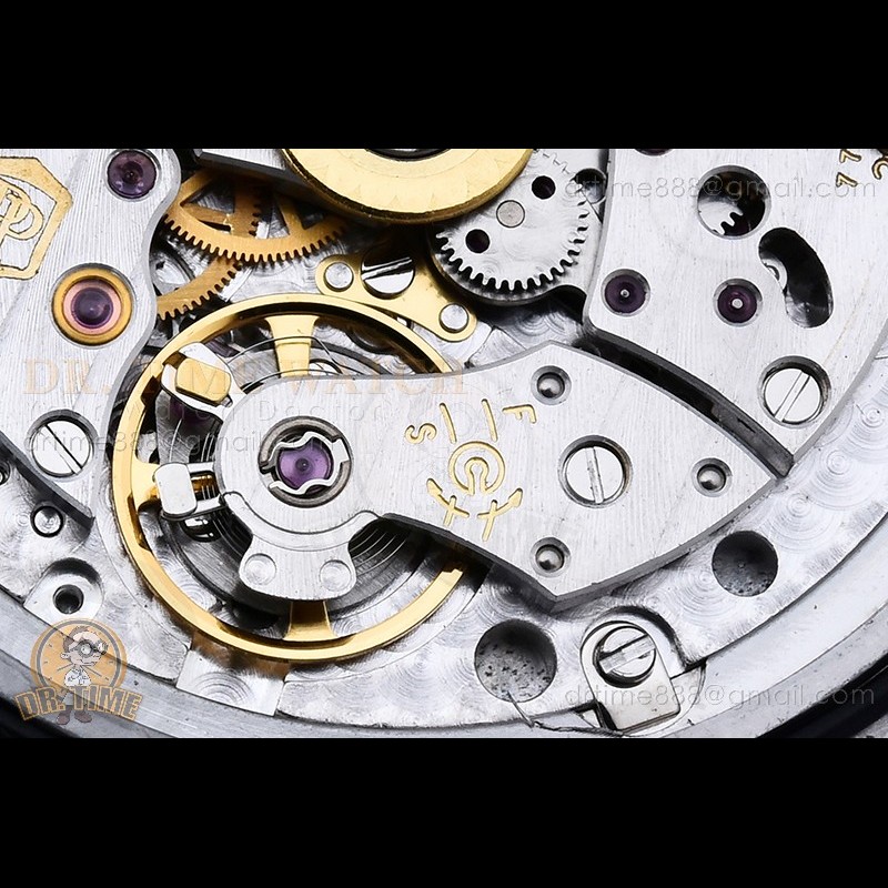 Size:40mm x 8.5mmMovement:Platinum Plated Miyota 9015 Automatic Movement with Decorated Bridges/Plates and Gold Plated Rotor with Insignia like Genuine Calibre PP324CS Functions:Hours, Minutes, Seconds, DateCase:18K Rose Gold Thick Plated (5 mils) on Solid Stainless Steel 316F (This is 1:1 Case Construction like Genuine) Crystal:Sapphire Crystal (Genuine...