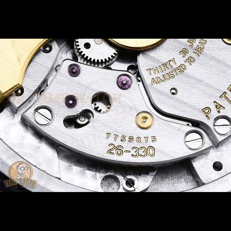 | Movement: | Platinum Plated Super Clone DD330 Automatic (28,800bph) Movement with Decorated Bridges/Plates and Gold Plated Rotor with Insignia like Genuine Calibre PP330CS (Based on DD324 with 330 decorations) |