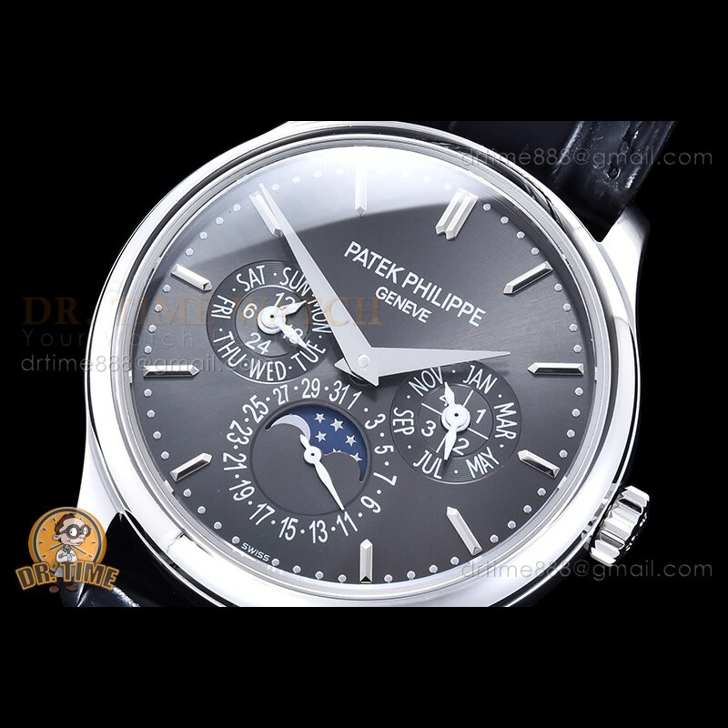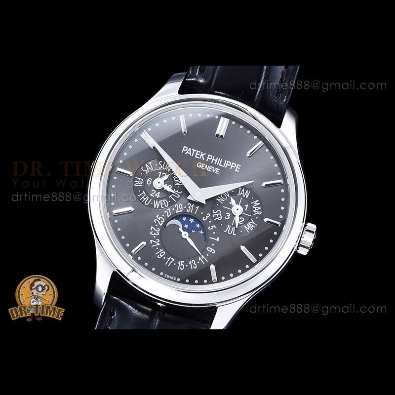 Size:40mm x 9mmMovement:Platinum Plated Miyota 9015 Automatic Movement with Decorated Bridges/Plates and Gold Plated Rotor with Insignia like Genuine Patek Calibre 324Functions:Hours, Minutes, Seconds, DateCase:18K Rose Gold Plated Stainless Steel 316F Crystal:Sapphire Crystal (Genuine has no AR Coating) Dial:Grey Dial with Stick MarkersBezel:18K Rose...