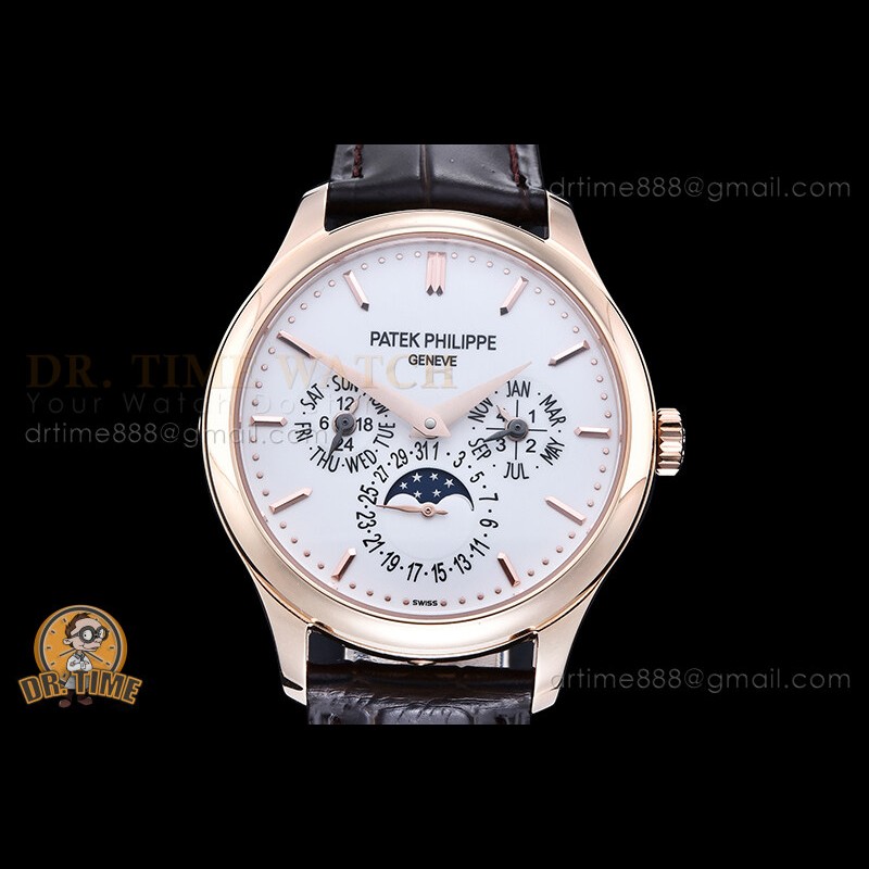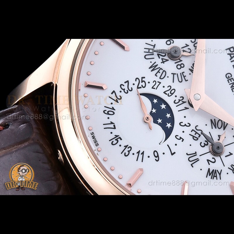 Size:40mm x 8.5mmMovement:Platinum Plated Miyota 9015 Automatic Movement with Decorated Bridges/Plates and Gold Plated Rotor with Insignia like Genuine Calibre PP324CSFunctions:Hours, Minutes, Seconds, DateCase:18K Rose Gold Plated Solid Stainless Steel 316F (This is 1:1 Case Construction like Genuine)Crystal:Sapphire Crystal with AR CoatingDial:White...