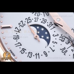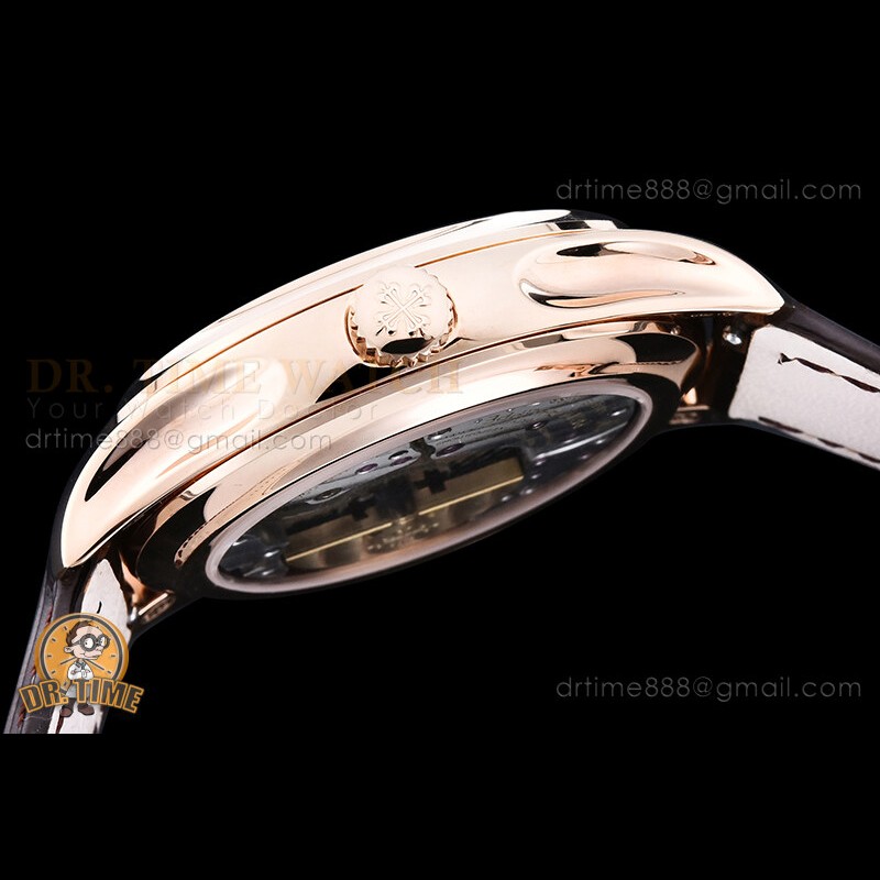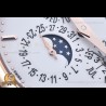 Size:38.5mm x 12mmMovement:Japanese Miyota 9015 Automatic movement with decorated rotor & bridges/plates like Patek Genuine Calibre 324 with Calendar function**Date Window at 6:00**Month Window at 12:00**Day Window at 12:00**Fully functional Moon-phase indicator Functions:Hours, Minutes, Seconds, Month, Date, Day, MoonphaseCase:18K Rose Gold Thick...