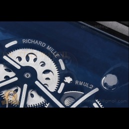Size:50mm x 43mm x13.5mmMovement:VA-RMUL2 1:1 Superclone Manual Handwind Movement like Genuine Functions:Hours, Minutes, SecondsCase:White Ceramic Case with Titanium Midcase and back with White Crown Crystal:Sapphire Crystal with Purple AR Coating (Similar to Genuine) Dial:Custom Skeletonal Dial with Black Inner Bezel Rehaut Bezel:Black Ceramic Bezel...