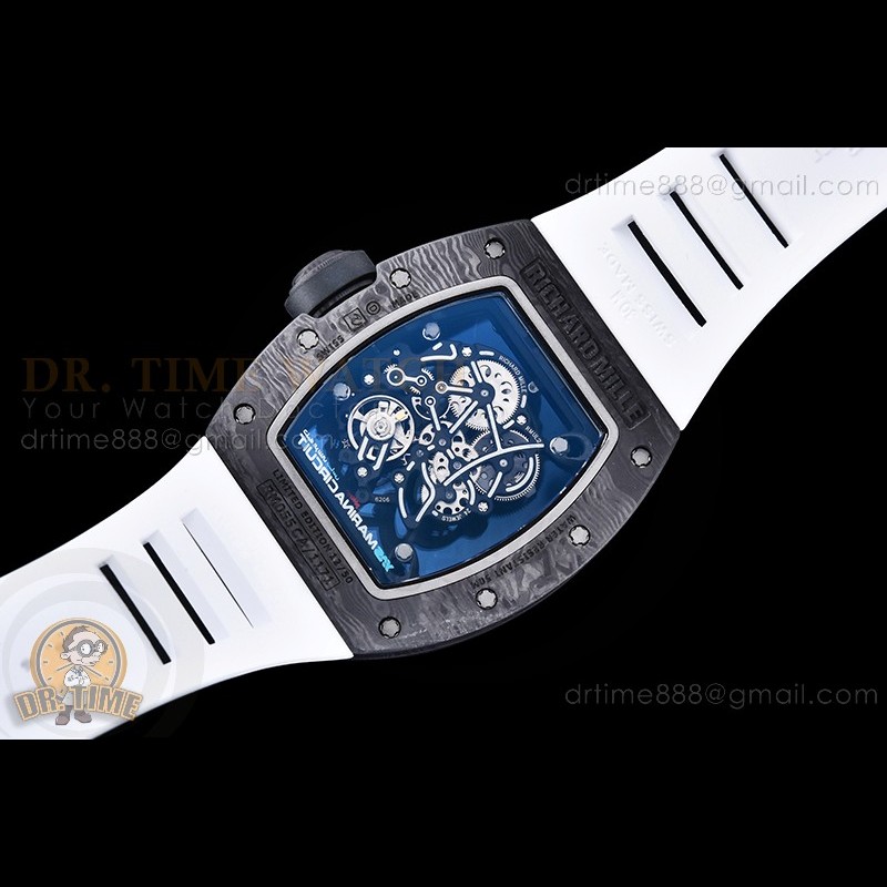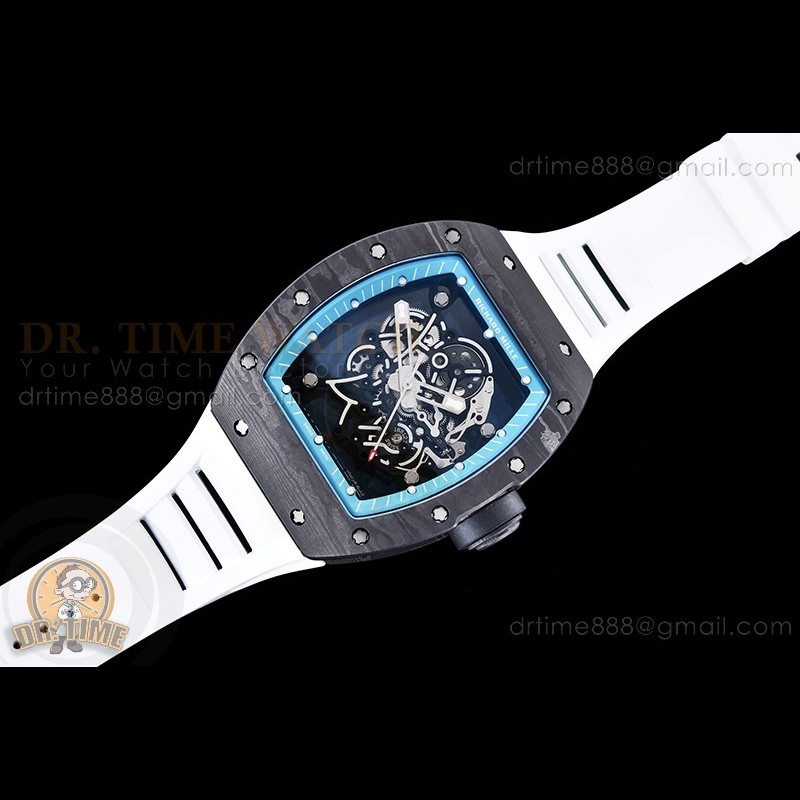 Size:49.9mm x 42.7mm x 13.4mmMovement:RMUL2 1:1 Superclone Manual Handwind Movement like GenuineFunctions:Hours, Minutes, SecondsCase:Genuine NTPT Quality Case with White CrownCrystal:Sapphire Crystal with Purple AR Coating (Similar to Genuine)Dial:Custom Skeletonal Dial with White/Black Inner Bezel RehautBezel:NTPT BezelStrap:White Rubber Strap...