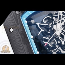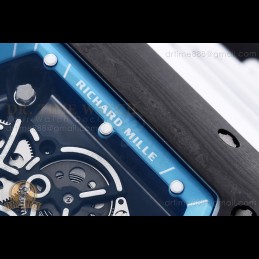 Size:42mm x 50mm x 14.2mmMovement:Japanese Seiko Movement Decorated to Genuine Richard Mille Manual Movement Functions:Hours, Minutes, SecondsCase:Genuine NPNT Quality Case with Blue Crown Crystal:Sapphire Crystal with Purple AR Coating (Similar to Genuine) Dial:Custom Skeletonal Dial with Correct Transparent Incabloc Diamond and Blue Inner Bezel Rehaut...