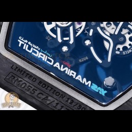 Size:43mm x 19mmMovement:Asia 7750 Valjoux Automatic Functional Chronograph with Decorated Rotor & Bridges/Plates Functions:Hours, Minutes, Seconds, Date, ChronographCase:Full Solid Black Forged Carbon Case Crystal:Sapphire CrystalDial:Custom Skeletonal Dial with "RM11-03" Marking with Black Inner Bezel Rehaut Bezel:Black Forged Carbon Bezel...