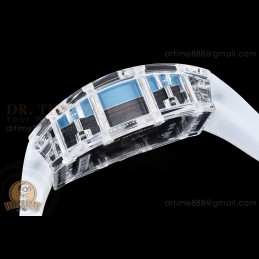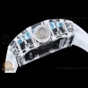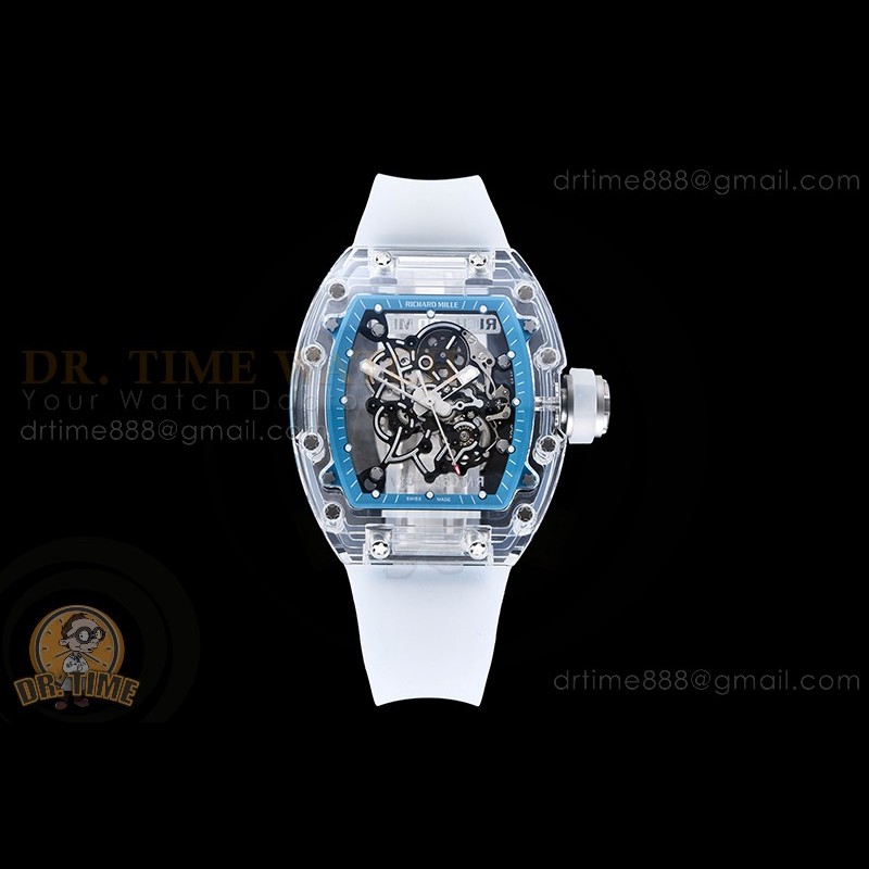 Size:44.5mm x 50mm x 14mmMovement:Asia Clone RMUL3 Manual Wind Movement, with working spring wheel at same position as genuine watch, very close to genuine looking.Functions:Hours, Minutes, SecondsCase:Genuine White NTPT Quality Case with Blue CrownCrystal:Sapphire Crystal (with Light Swiss Grade AR coat)Dial:Custom Skeletonal Dial with inner Black Bezel...