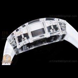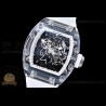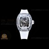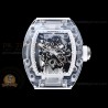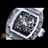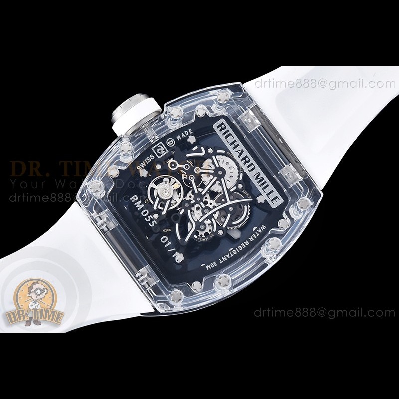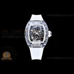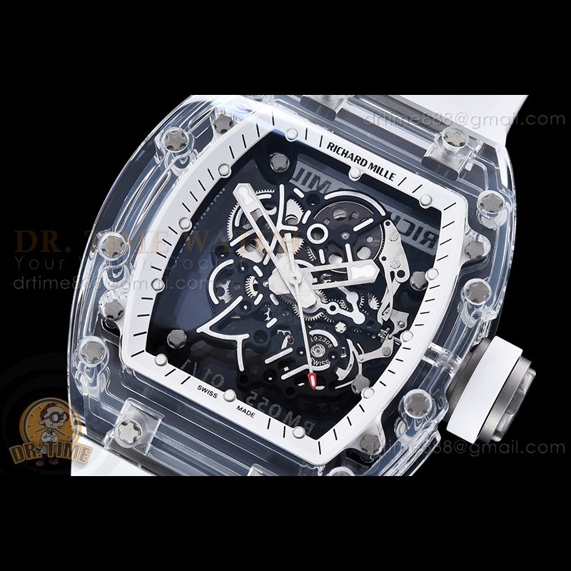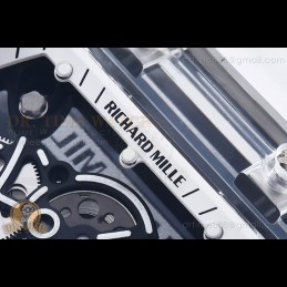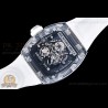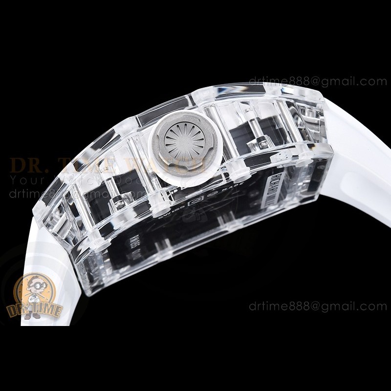 Size:49.9mm x 42.7mm x 13.5mmMovement:RMUL2 Manual Wind MovementFunctions:Hours, Minutes, SecondsCase:Crystal Glass Case Set (White Crown)Crystal:Sapphire CrystalDial:Custom Skeletonal Dial with Black Inner Bezel RehautBezel:Black Inner BezelStrap:Translucent Rubber Strap Clasp:Folded BuckleWater resistance:-Waterproofing rating is merely a guide. We do...