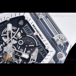 Size:50mm x 43mm x 17mmMovement:Clone RMUL3 Manual Movement with Upgraded Clear Jewel Functions:Hours, Minutes, SecondsCase:Genuine White NPNT Quality Case with Red Crown Crystal:Sapphire Crystal with Purple AR Coating (Similar to Genuine) Dial:Custom Skeletonal Dial with Correct Transparent Incabloc Diamond, "RM35-01 Rafa" Marking and Black Inner Bezel...