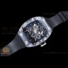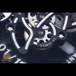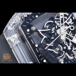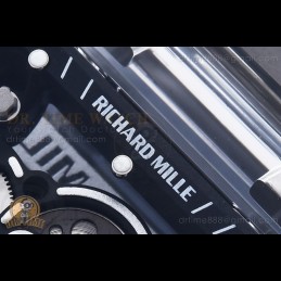 Size:43mm x 19mmMovement:Asia 7750 Valjoux Automatic Functional Chronograph with Decorated Rotor & Bridges/Plates Functions:Hours, Minutes, Seconds, Date, ChronographCase:Full Solid Black Forged Carbon Case Crystal:Sapphire CrystalDial:Custom Skeletonal Dial with "RM11-03" Marking with Black Inner Bezel Rehaut Bezel:Black Forged Carbon Bezel...
