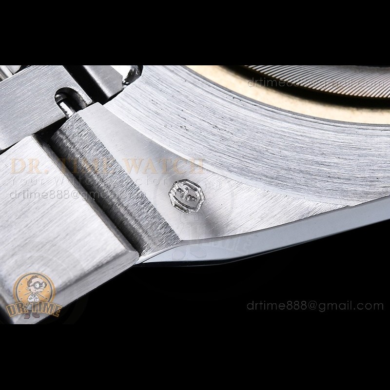 Size:40mm x 12.1mmMovement:Asia Clone EWE3285 Automatic GMT movement with decorated bridges & rotor (Hour Hand Adjustable)Functions:Hours, Minutes, Seconds, GMTCase:18K Rose Gold Plated High Grade Solid SS 904L (Rehaut at 6:00 has random serial like Genuine)Crystal:Sapphire Crystal with etched crown at 6:00 position (light AR on Cyclops)Dial:Black...