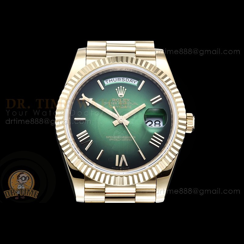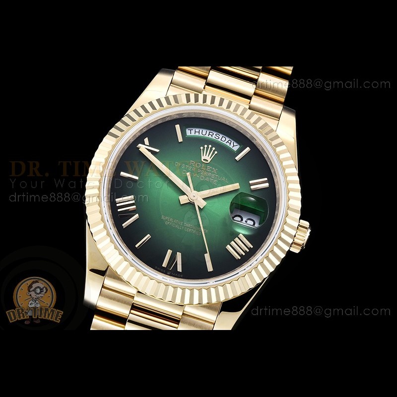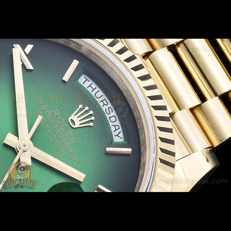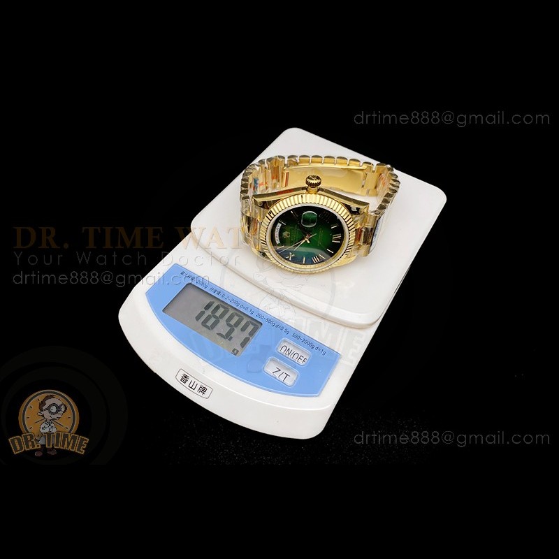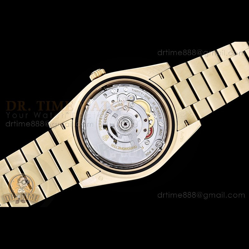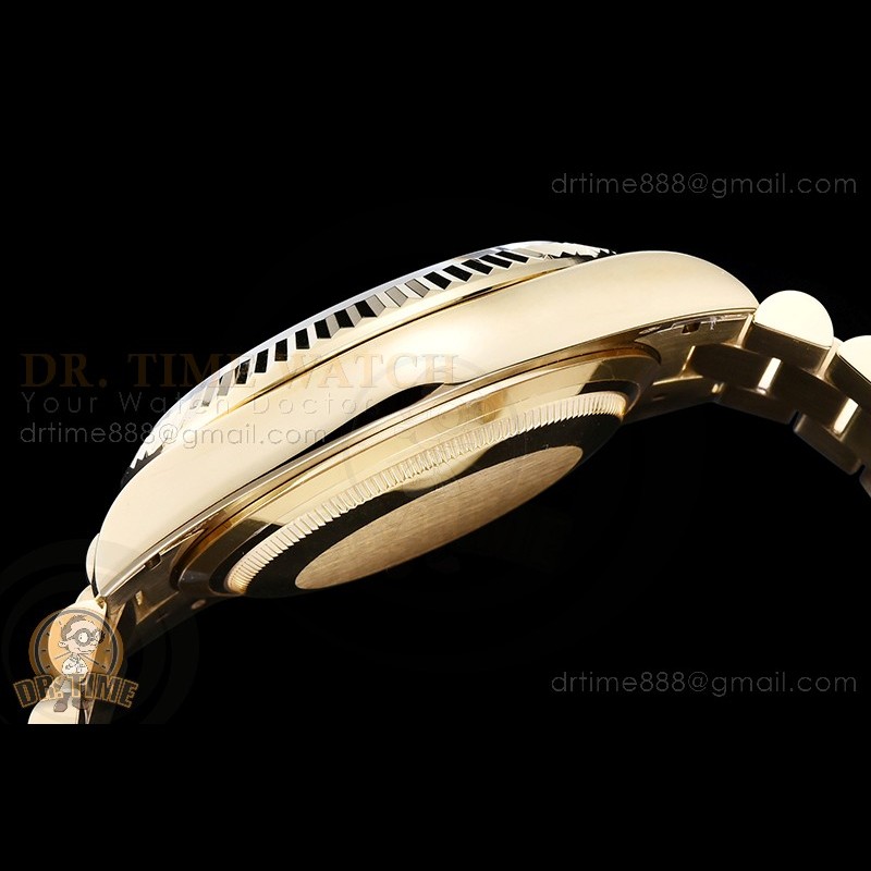 | Strap: | 18K Yellow Gold Plated New Style 2 Piece End Link President Stainless Steel 904L Link Bracelet (added weight) with Single Fold Deployant Clasp |