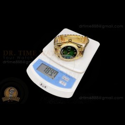 Size:42mm x 15mmMovement:Asian Custom 23J, 21600bph, Automatic Movement with Decorated Bridges and Plates like Genuine Caliber 9001Functions:Hours, Minutes, Seconds, DateCase: 18K Yellow Gold Plated Solid Stainless Steel 316FCrystal:Sapphire Crystal (Etched Rolex Emblem at 6:00 on the Sapphire Glass)Dial:Green Dial, Stick Markers (Superlume on Markers and...