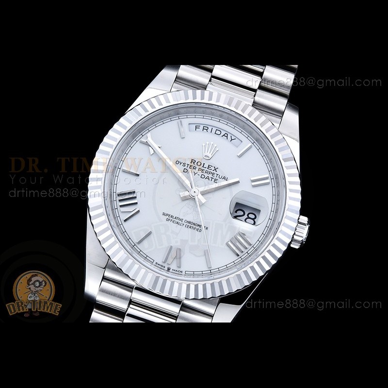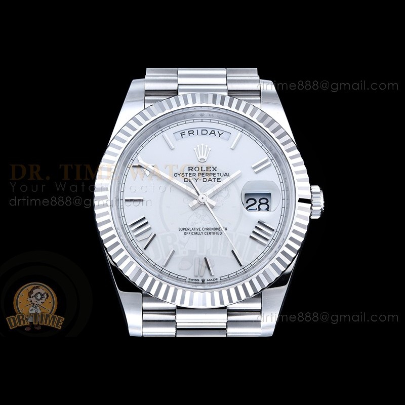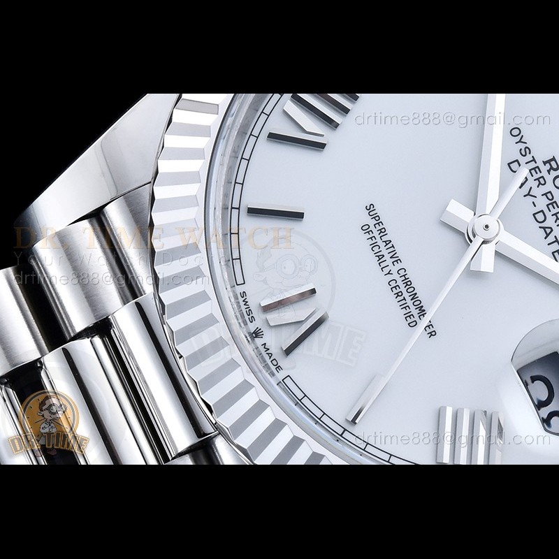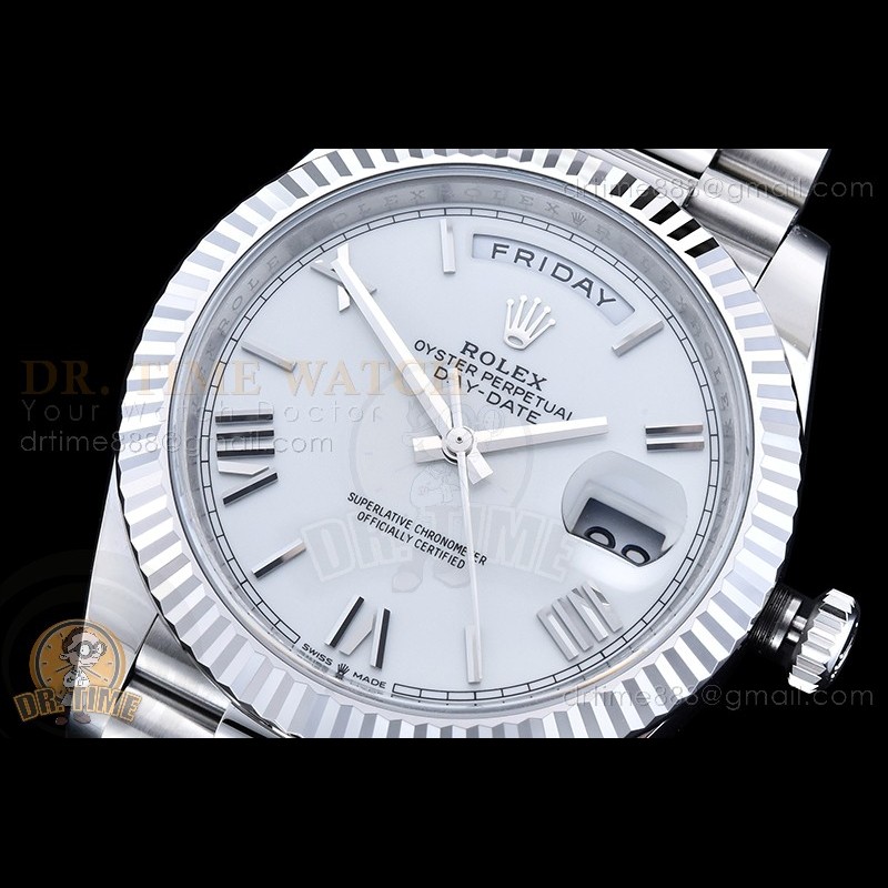 Size:40mm x 12mm (1:1 Dimension against Genuine) Movement:Please Select Movement OptionFunctions:Hours, Minutes, Seconds, Day, DateCase:High Grade Solid Stainless Steel 904LCrystal:Sapphire Crystal (Same Thickness as Genuine with etched crown at 6:00 position) Dial:White MOP Dial with Diamond Markers Bezel:Fluted BezelStrap:New Style 2 Piece End Link...