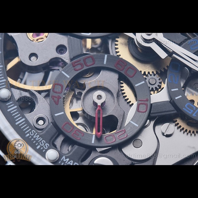 | Movement: | Asian DanDong 4802 Skeleton movement with full functional chronograph |