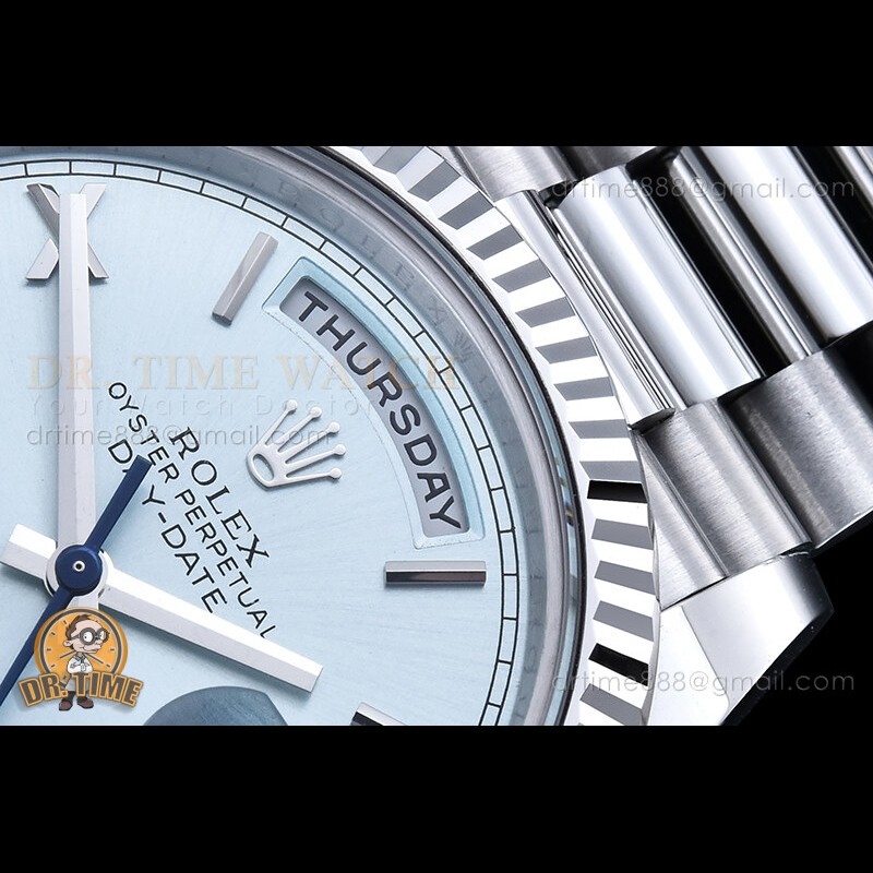 | Strap: | 18K White Gold Plated New Style 2 Piece End Link President Stainless Steel 904L Link Bracelet with Single Fold Deployant Clasp |