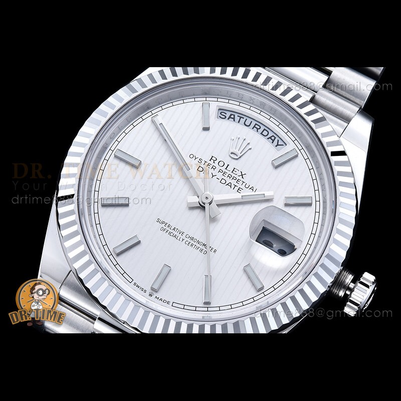 Size:40mm x 12.5mm (1:1 Dimension against Genuine) Movement:Asia ETA 2836-2 Automatic movement, 28800bph Functions:Hours, Minutes, Seconds, Day, DateCase:High Grade Solid Stainless Steel 904L (with Option for Weighted Case and Bracelet)Crystal:Sapphire Crystal (Same Thickness as Genuine with etched crown at 6:00 position) Dial:Grey Dial with Stick...
