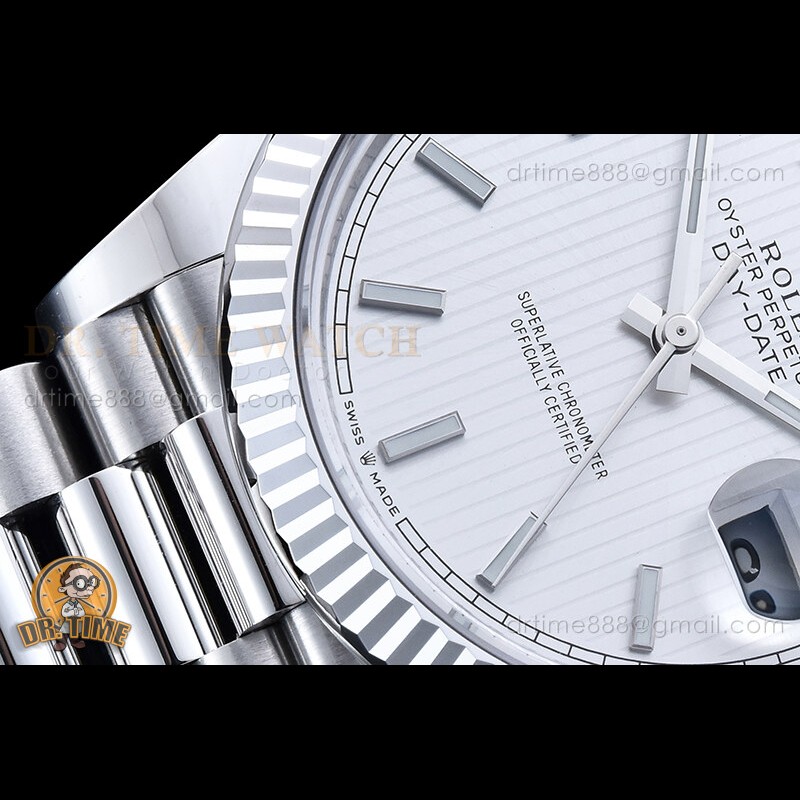 | Strap: | 18K White Gold Plated New Style 2 Piece End Link President Stainless Steel 904L Link Bracelet with Single Fold Deployant Clasp |
