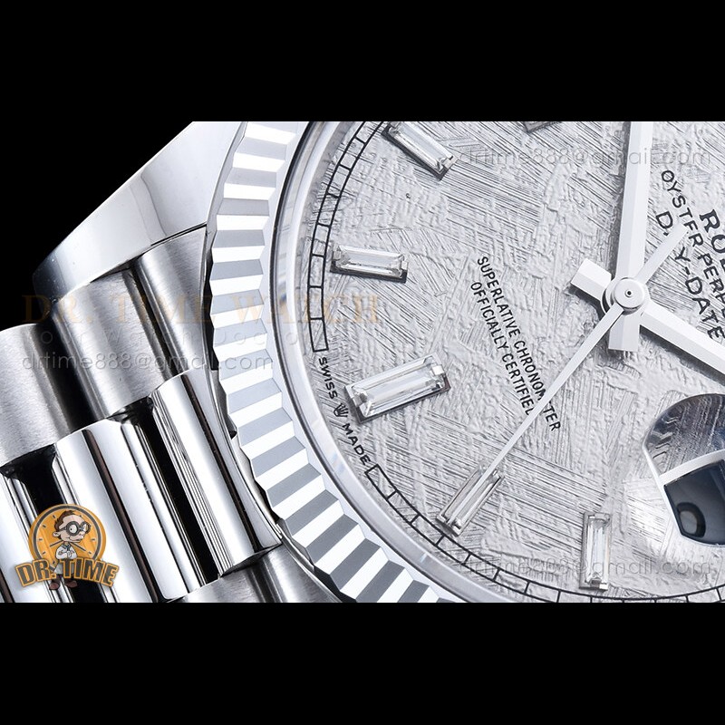 | Strap: | 18K White Gold Plated New Style 2 Piece End Link President Stainless Steel 904L Link Bracelet with Single Fold Deployant Clasp |