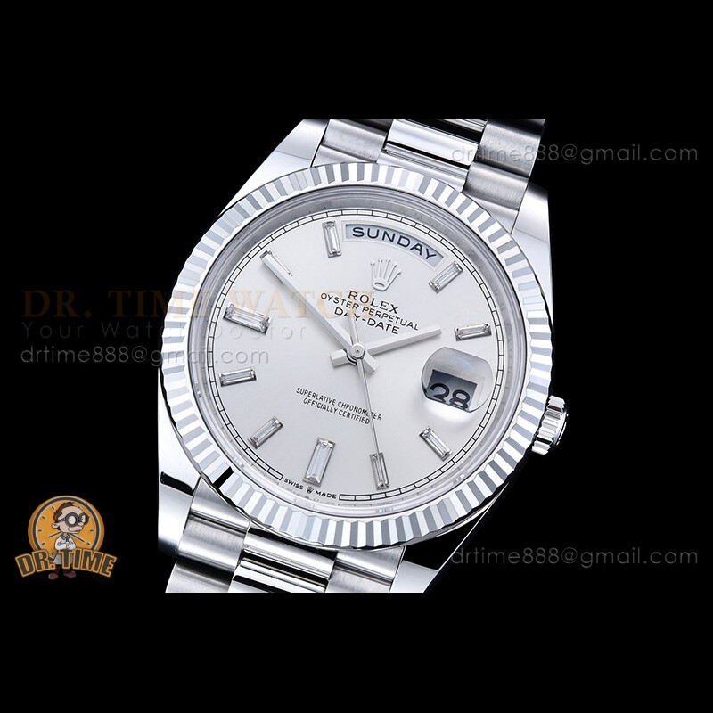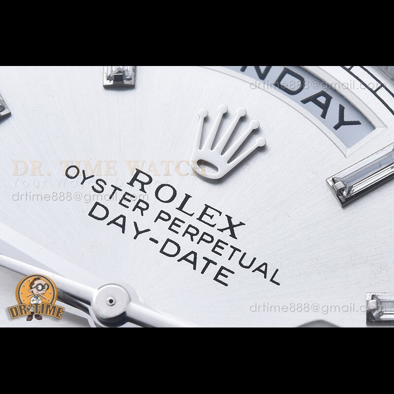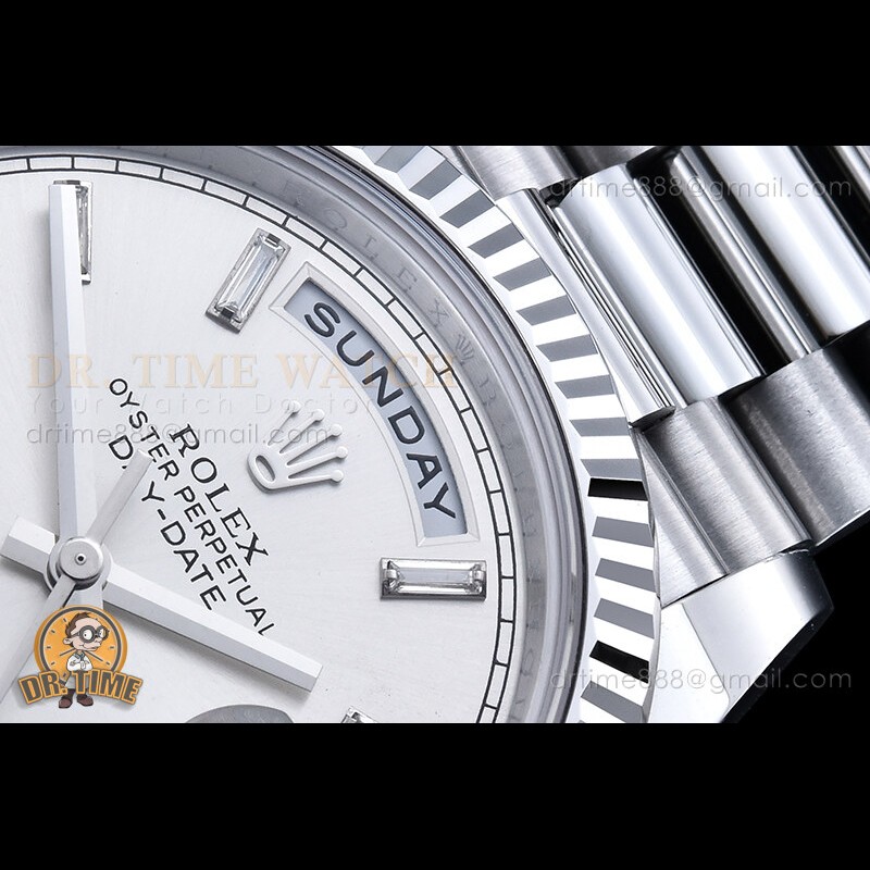 Size:40mm x 12mm (1:1 Dimension against Genuine) Movement:Please Select Movement OptionFunctions:Hours, Minutes, Seconds, Day, DateCase:High Grade Solid Stainless Steel 904L Crystal:Sapphire Crystal (Same Thickness as Genuine with etched crown at 6:00 position) Dial:Porcelain White Dial with Roman Markers Bezel:Diamond BezelStrap:New Style 2 Piece End...