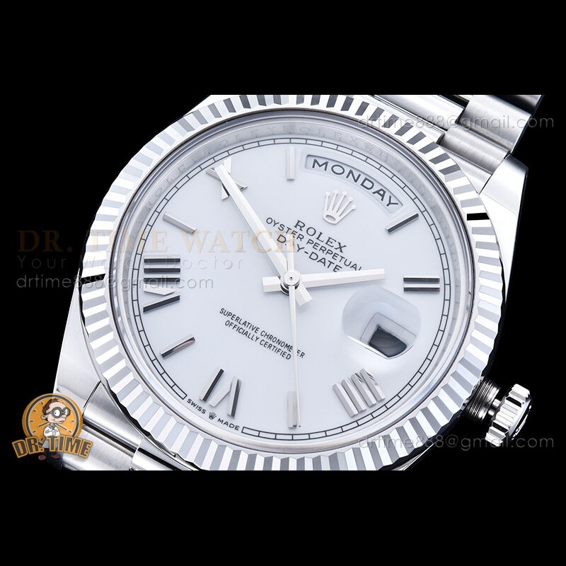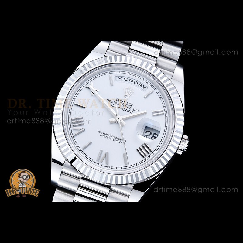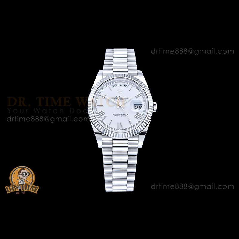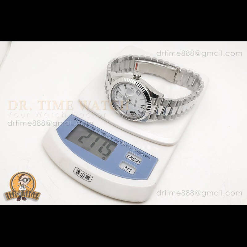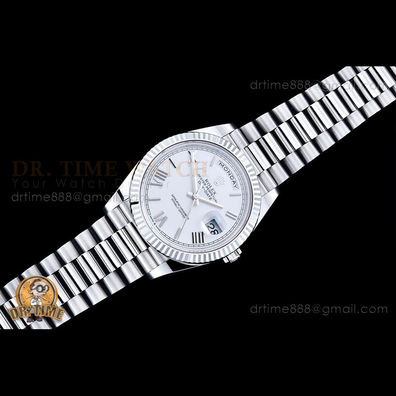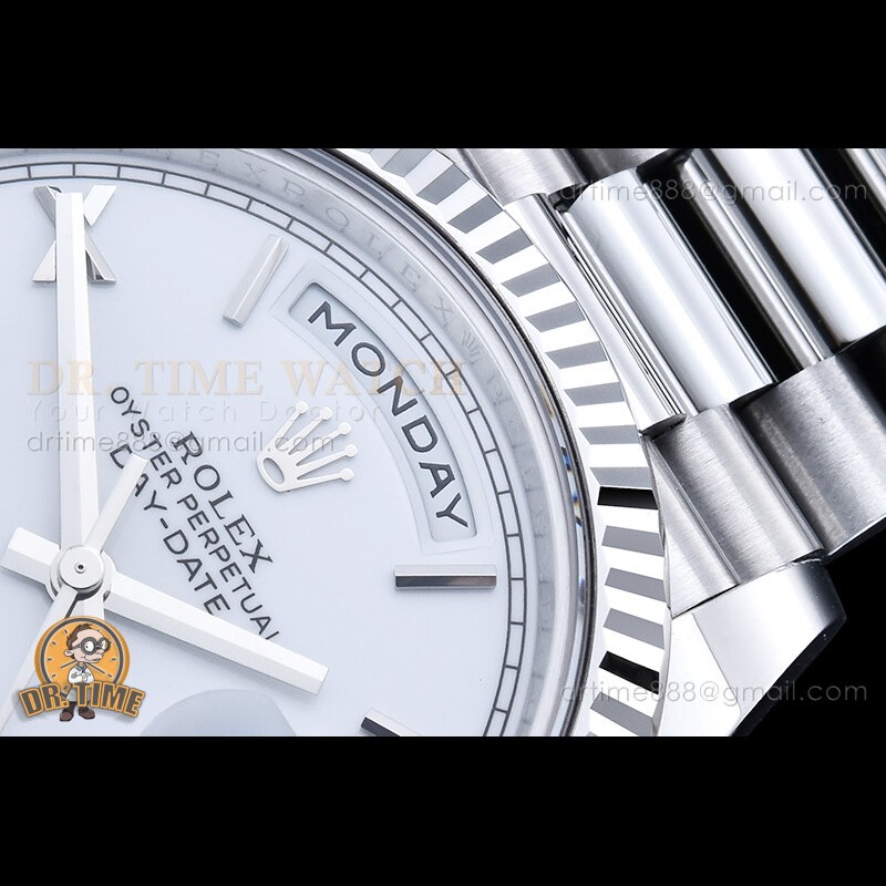 | Strap: | 18K White Gold Plated New Style 2 Piece End Link President Stainless Steel 904L Link Bracelet with Single Fold Deployant Clasp |